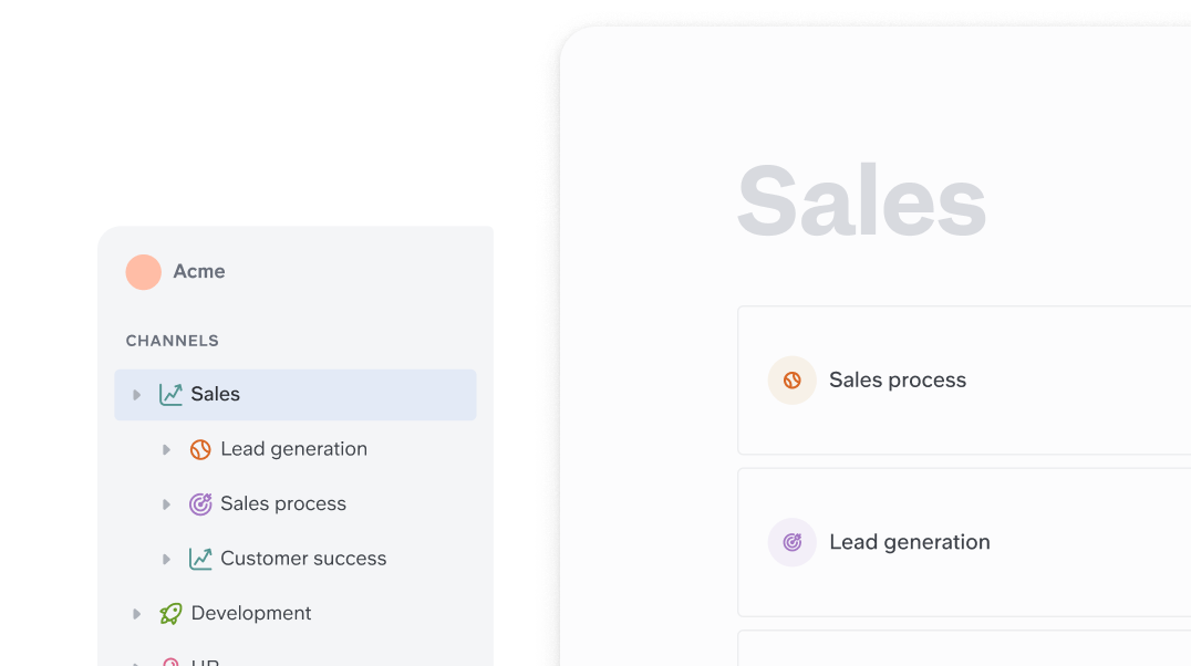 Your organizational chart can define your wiki's layout! In fact, 80% of Slite users choose to organize their company wikis by department. These wikis are easy to understand and easy to navigate - especially if you’re looking for something within your own team or department.